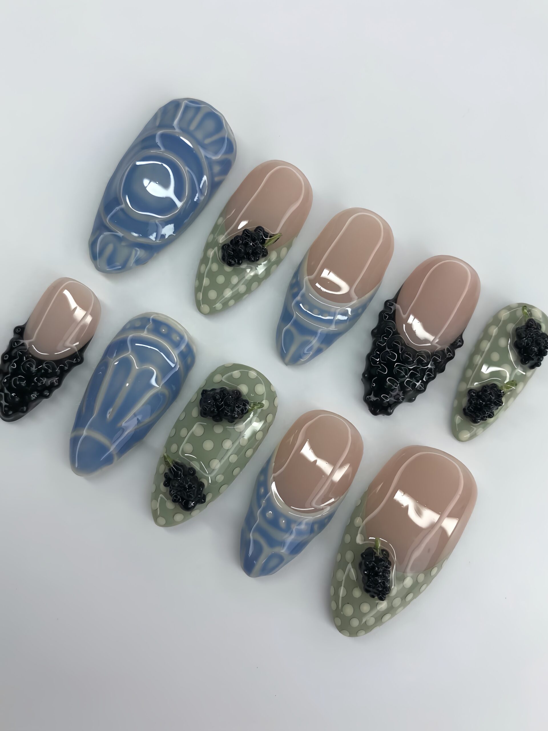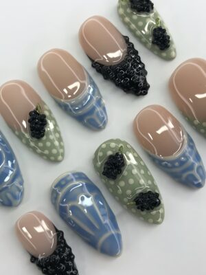 If you’d like a custom size, just choose Custom Size and leave your measurements in the notes at checkout — in this order: Thumb, Index, Middle, Ring, Pinky.
